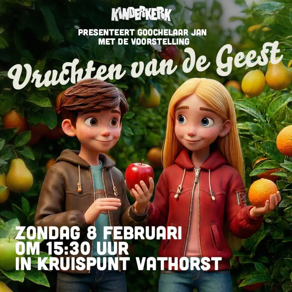 Jan de Goochelaar neemt ons mee in een voorstelling over de Vruchten van de Geest. We starten met een boom en een verwijzing naar de zondeval. Als de boom wordt omgedraaid is het een hart vol gaten. Zijn jullie klaar om die gaten te vullen? En ben jij een boom die vruchten draagt? Alle kinderen van 4 tot 12 jaar zijn van harte welkom op zondagmiddag 8 februari om 15:30 uur aan de Terschellingkade 22 in Kruispunt Vathorst. Nemen jullie je vriendjes en vriendinnetjes mee? We kijken naar jullie uit!!